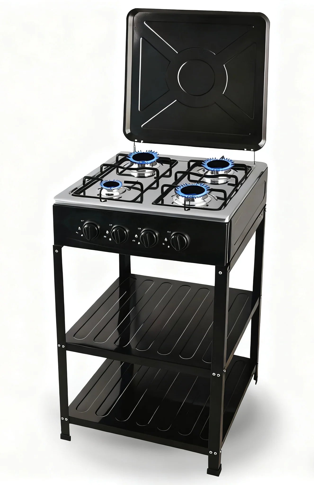 Šporet radi na plinske boce, što ga čini idealnim izborom za domaćinstva bez priključka na prirodni gas, kao i za vikendice, kampere, spoljašnje i pomoćne kuhinje. Stabilne metalne rešetke obezbeđuju sigurno korišćenje različitih vrsta posuđa, dok poklopac štiti plamenike kada uređaj nije u upotrebi.