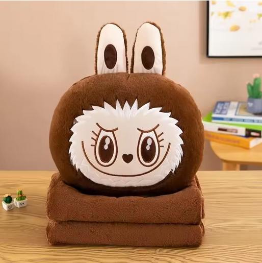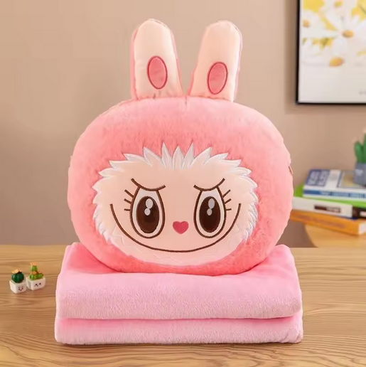 Presladak i praktičan Labubu jastuk krije u sebi mekano ćebe dimenzija 110 × 160 cm, a istovremeno se pretvara i u ranac.