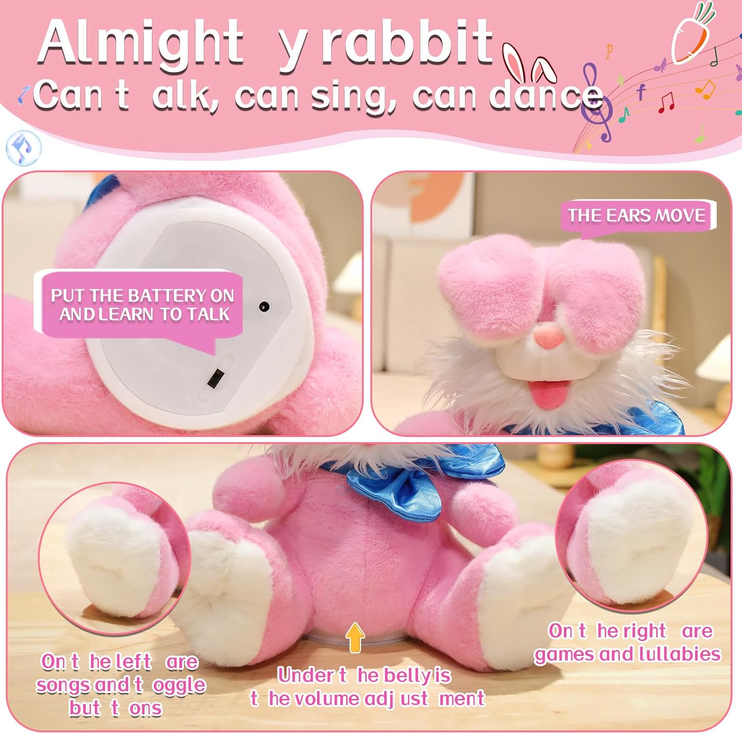 - 🐰 Interaktivna zabava: Zeka maše ušima dok peva i igra se s vašim detetom.