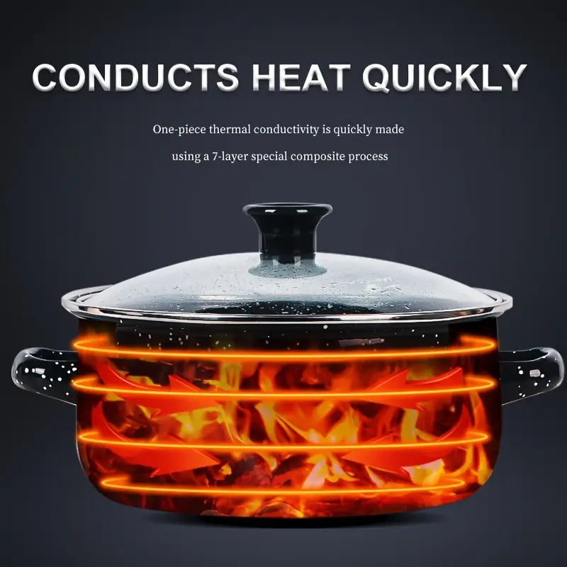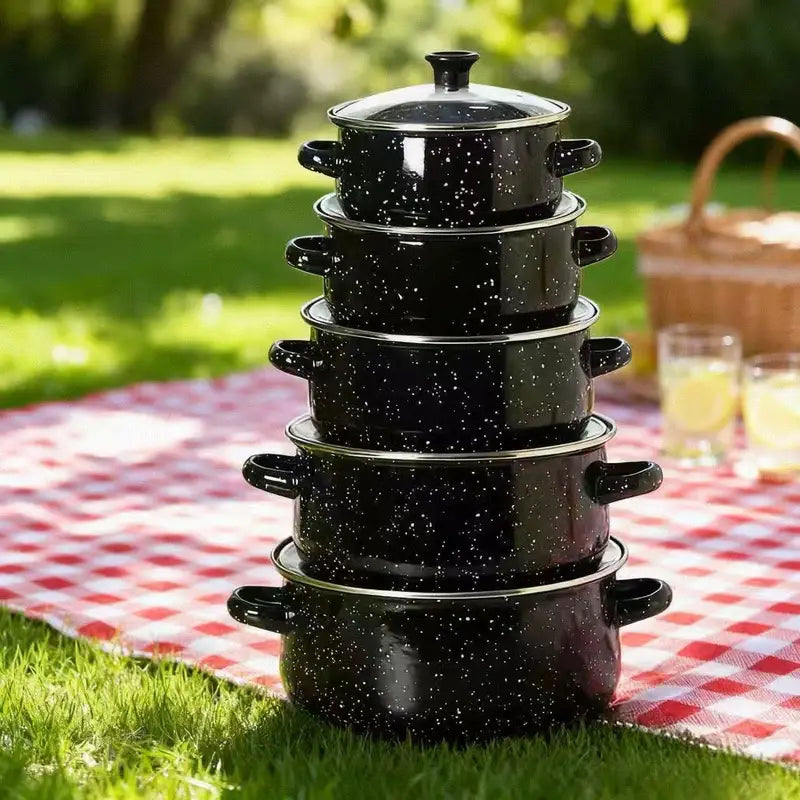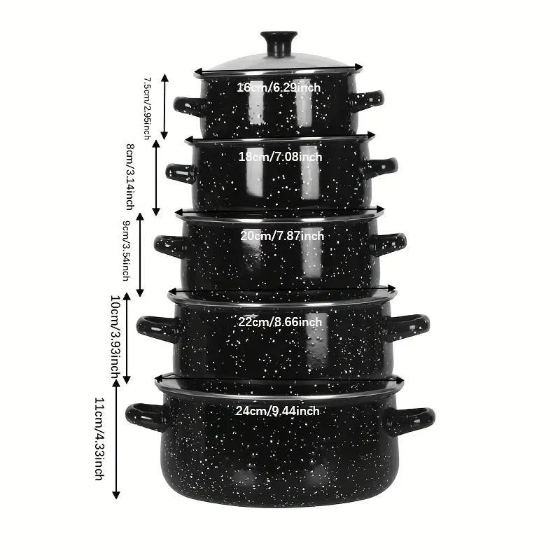 Unesite stil, praktičnost i vrhunski kvalitet u svoju kuhinju uz Premium Enamel Cookware Set – set od 5 šerpi koji spaja moderni dizajn i izvanrednu funkcionalnost. Ove lagane, izdržljive posude savršene su za pripremu supa, variva, sosova, testenina i svakodnevnih jela, kako u kućnim uslovima, tako i u profesionalnim kuhinjama.