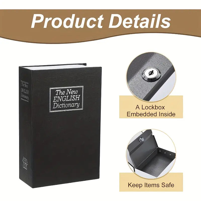 Na prvi pogled izgleda kao obična knjiga na polici, ali unutar korica krije se metalni sef sa bravom i dva ključa koji čuva vaše dragocenosti daleko od znatiželjnih pogleda.