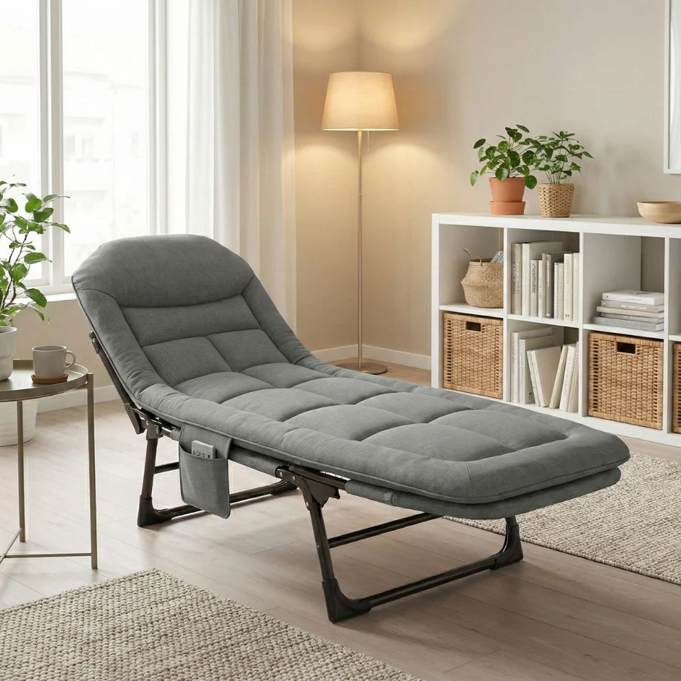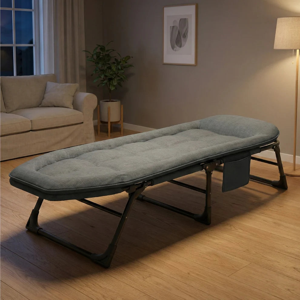 Uživajte u maksimalnom komforu gde god da se nalazite uz praktičan i udoban sklopivi krevet za odmor. Ovaj funkcionalni model kombinuje stabilnu konstrukciju, mekanu podlogu i podesivi naslon, pružajući savršeno mesto za opuštanje kod kuće ili napolju.