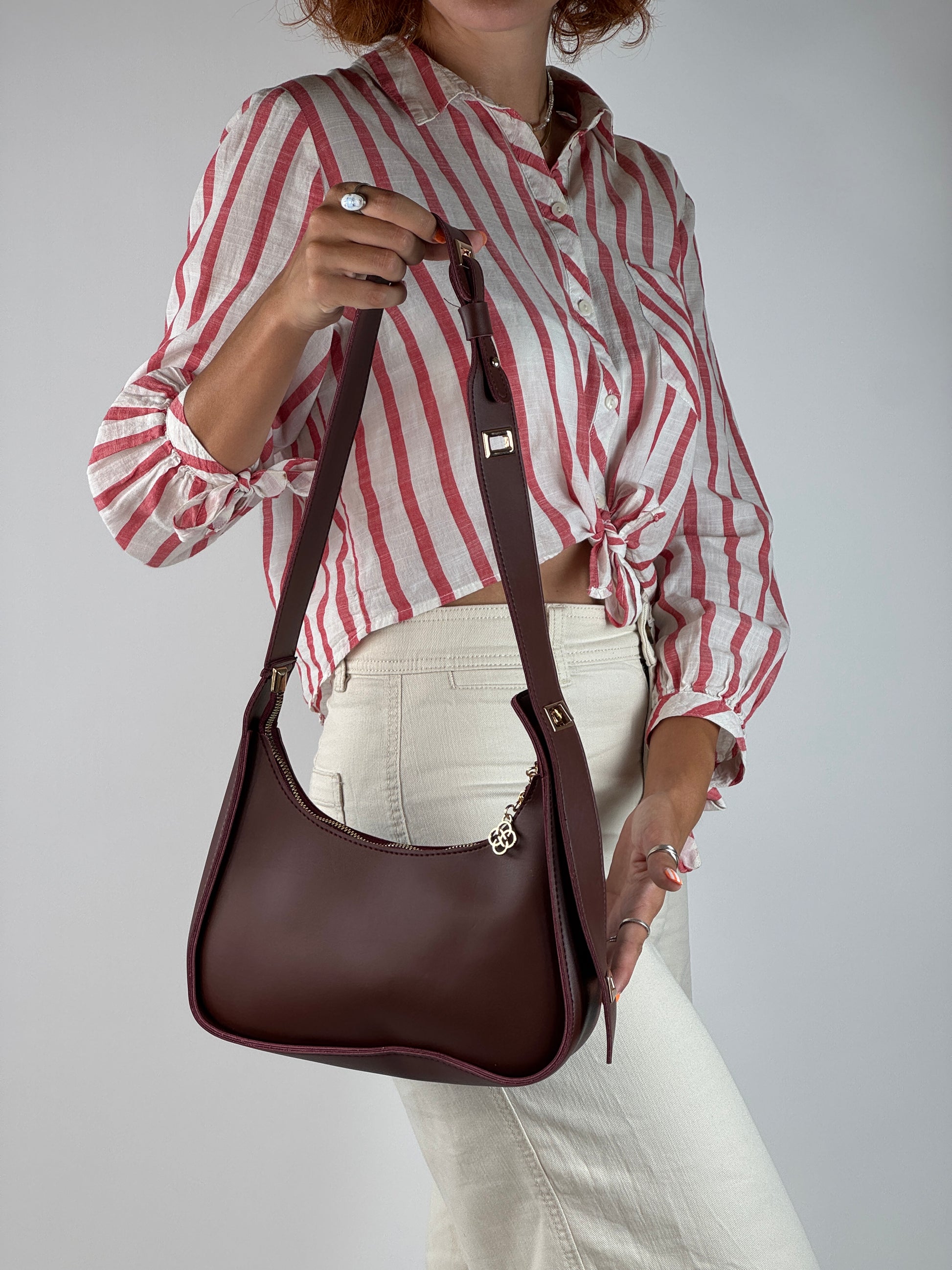 Torbica Elara je savršen balans između stila i funkcionalnosti. Njena smirena tamna boja i minimalistički oblik čine je svestranom i idealnom za svakodnevne kombinacije.