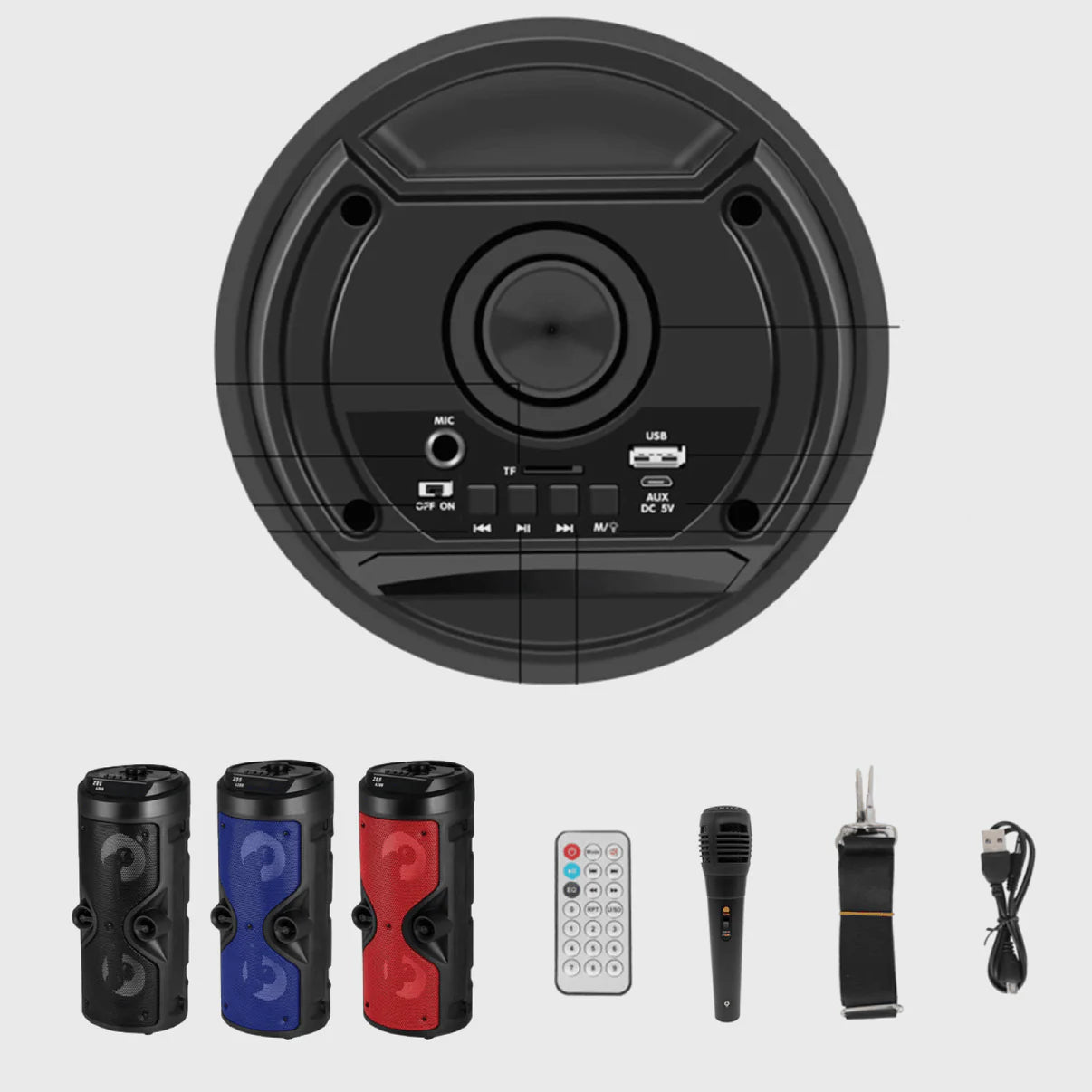 TORNADO Bluetooth karaoke zvučnik predstavlja savršen spoj snažnog zvuka, modernog dizajna i vrhunske zabave. Namenjen je svima koji vole muziku, pevanje i dobru atmosferu – bilo da se radi o kućnim žurkama, rođendanima, okupljanjima sa prijateljima ili pravim karaoke večerima.