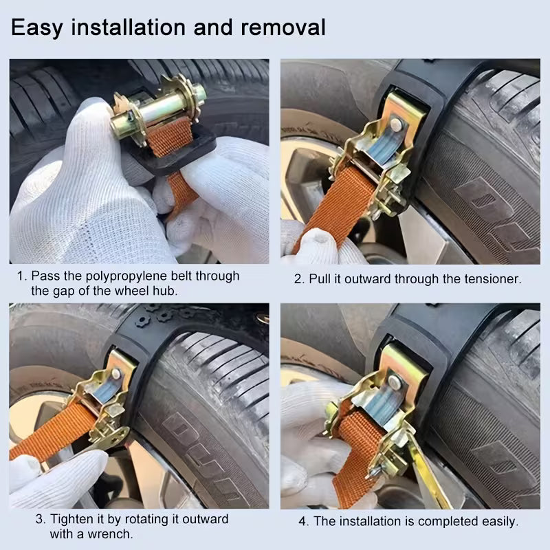 Set od 10 lanaca ravnomerno raspoređenih po točkovima obezbeđuje stabilnu vožnju i maksimalno prianjanje, dok kompaktna oprema omogućava lako skladištenje i brzu upotrebu u nepredviđenim situacijama.